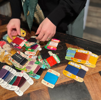めぐる布市から届いた4つのダンボール箱には、布だけでなく、ファスナーやパイピングテープなどのさまざまなパーツや絹糸といった素材も、こちらからの大雑把なリクエストで、一緒に詰めてもらいました。中身は、、、手芸好きにとってはまさに宝箱!