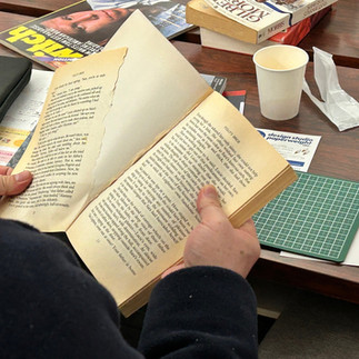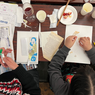 お酒も入って気持ちがほぐれた所で、さっそくコラージュづくりです。